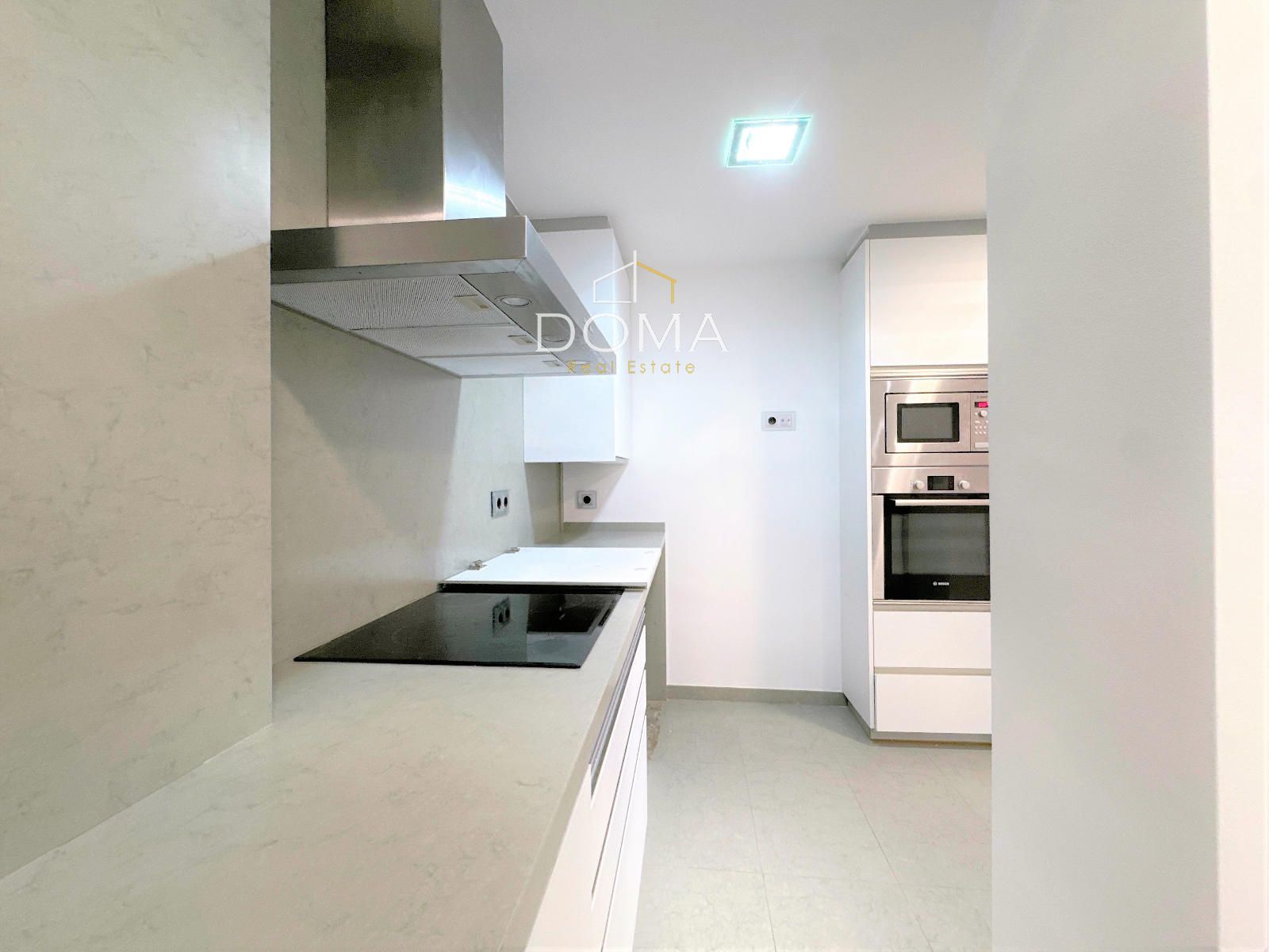 La cocina, de diseño cuadrado y muy funcional, está en perfecto estado y ofrece un espacio cómodo y práctico para el día a día.