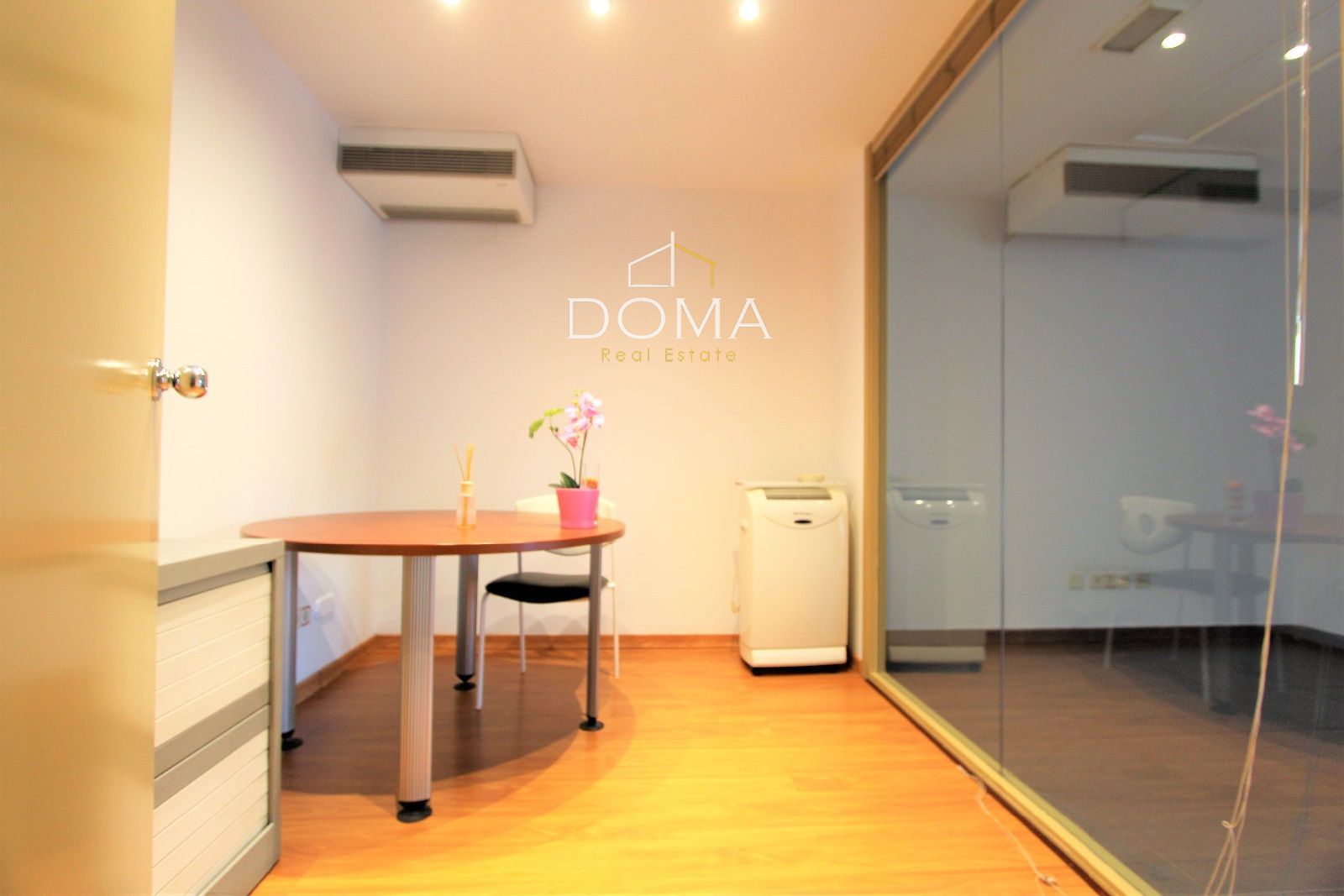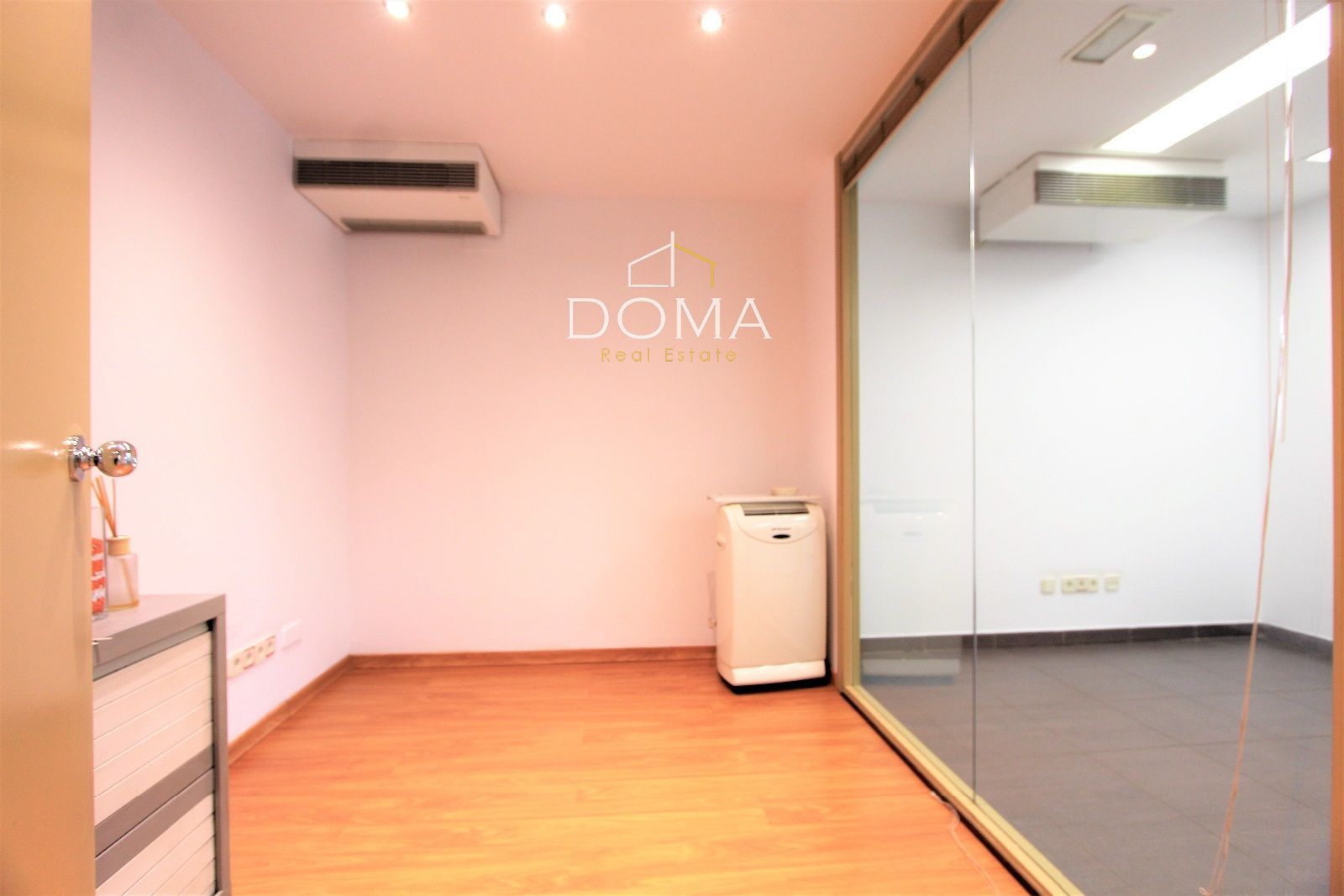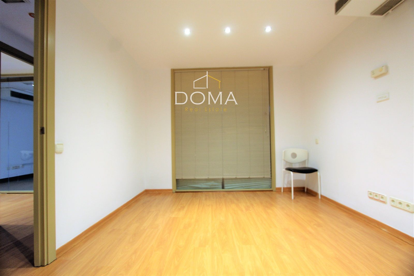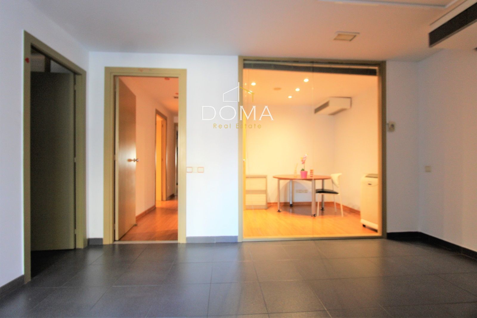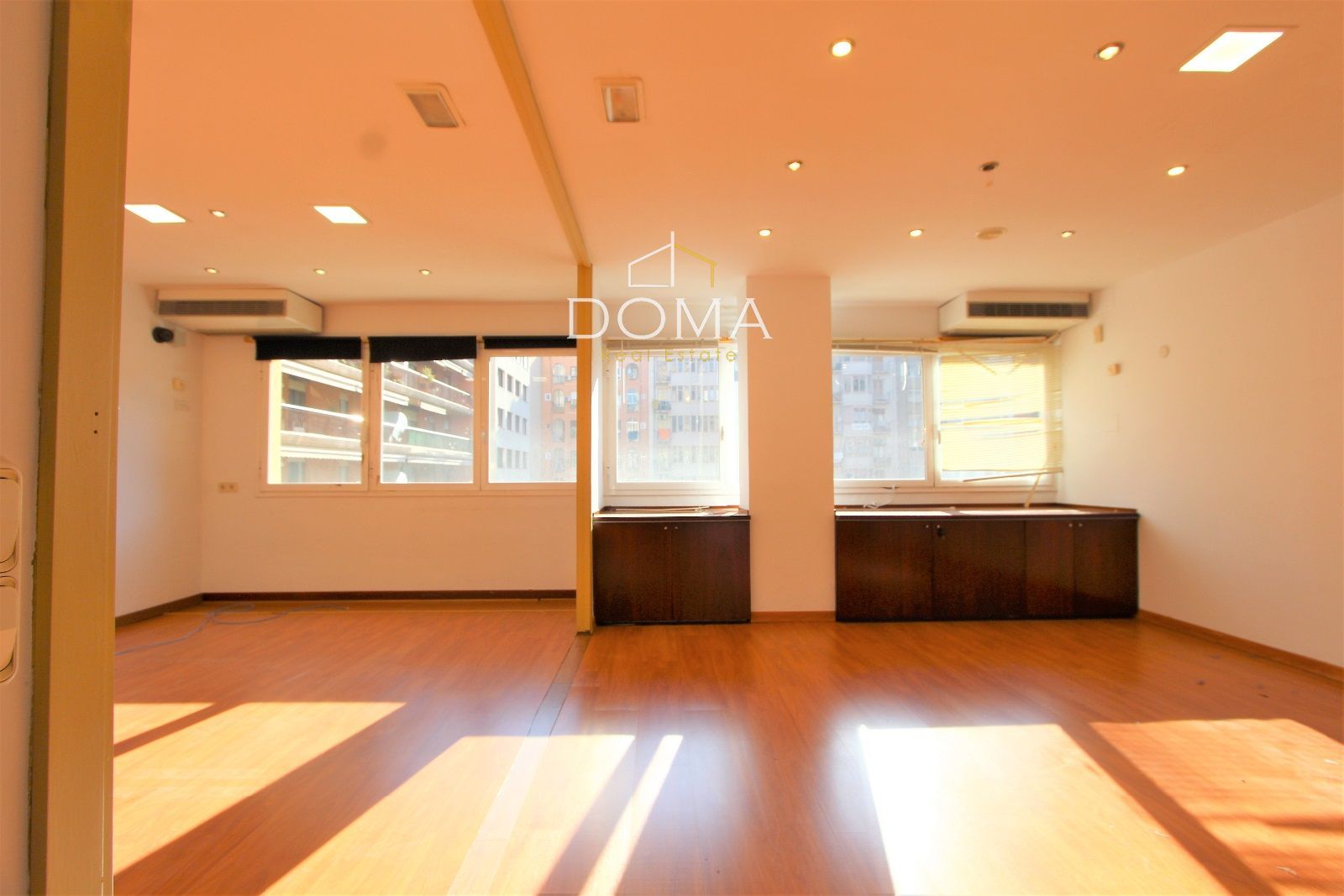 Al entrar, nos da la bienvenida una gran recepción , desde la que disponemos de acceso a un distribuidor que nos da paso a dos baños (masculino y femenino). Seguido, entramos en un amplio despacho desde el que disponemos de acceso a una sala con división acristalada, Zona de RAC y otro despacho independiente dando a la Gran Vía de les Corts Catalanes.