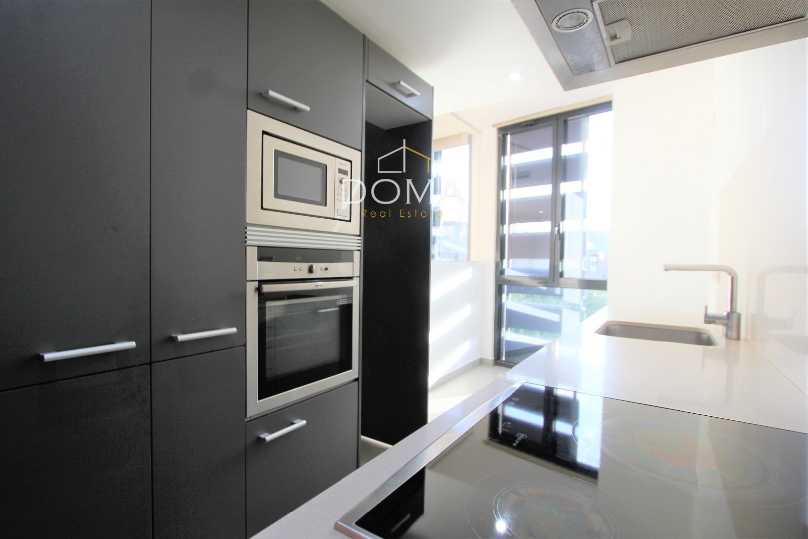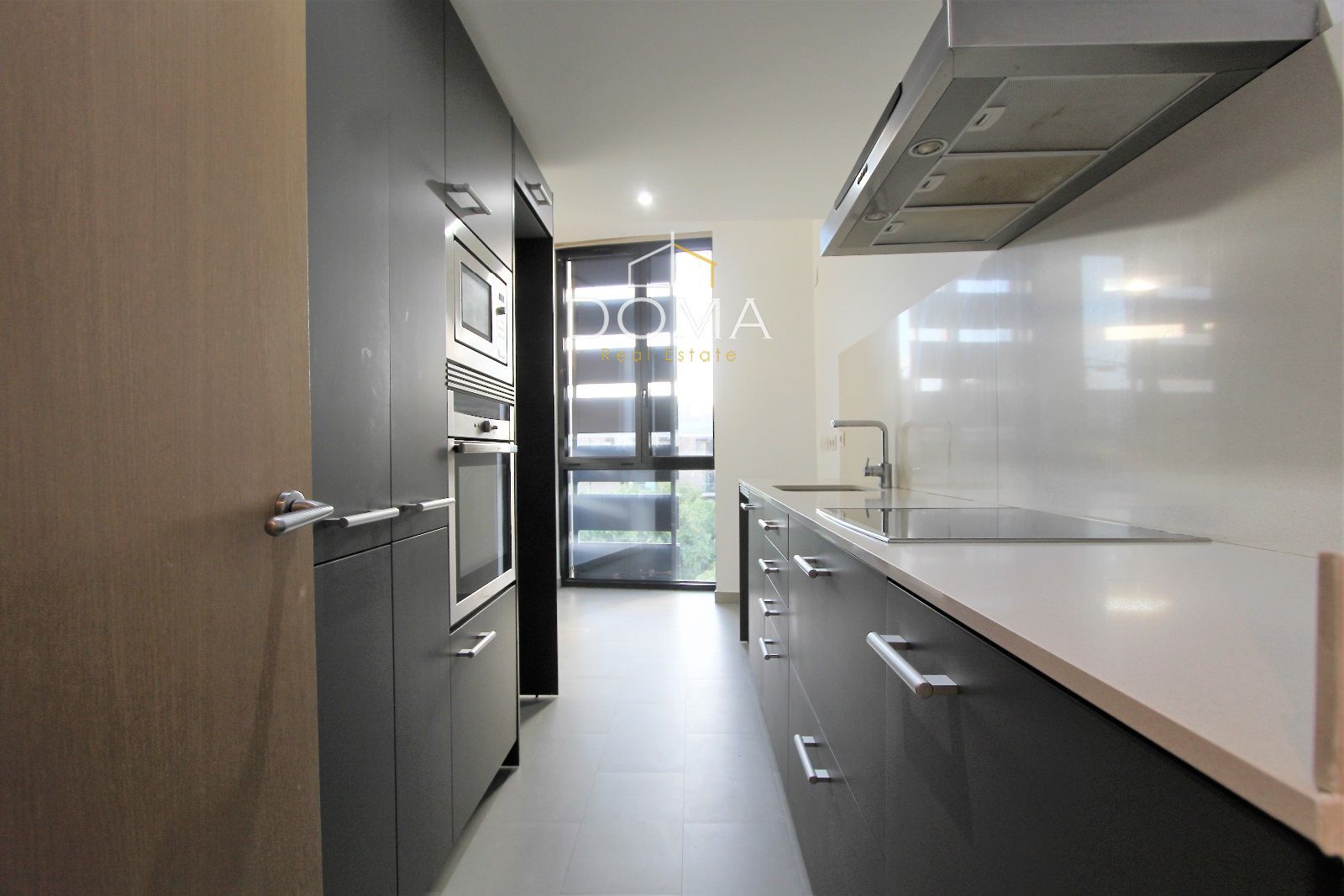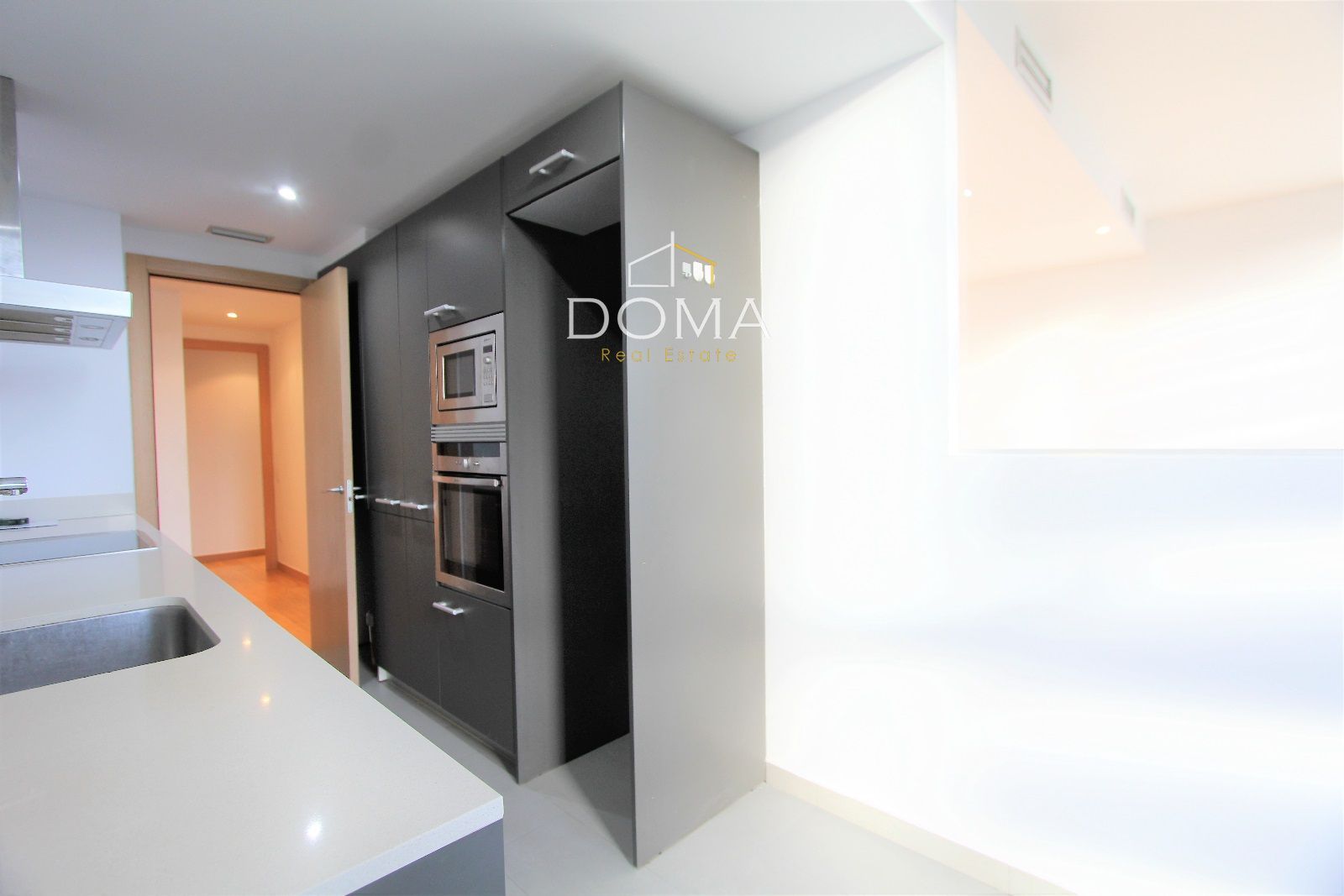En la zona de día con orientación suroeste, encontramos el salón de 24m2, con grandes ventanales y espectaculares vistas despejadas dada su altura, con estores eléctricos y un ventanal interior que da a la cocina, lo que genera más sensación de amplitud. La cómoda cocina de 10m2 con un gran ventanal, con mobiliario realizado con materiales de alta gama y gran capacidad de almacenaje.